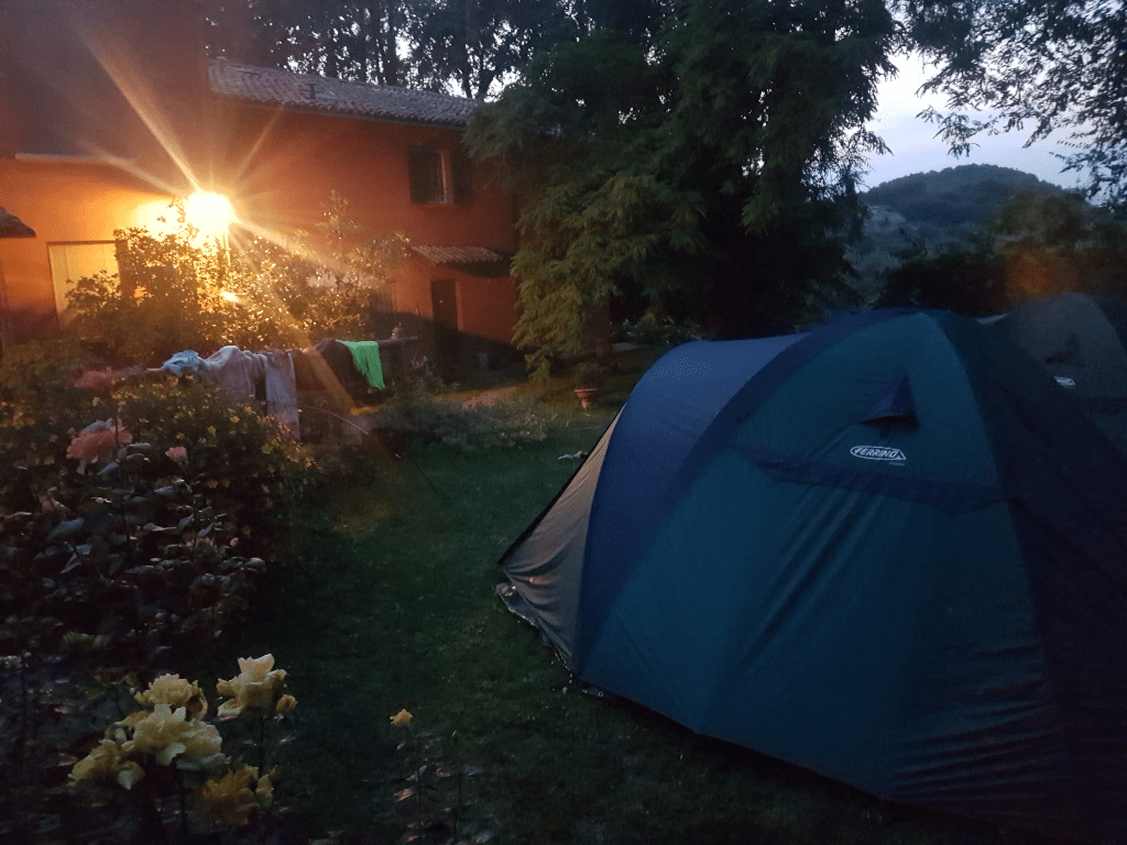 La sosta con la vostra tenda e l’uso del bagno è gratuito ma riservato solo a chi consuma sia cena che colazione in agriturismo.
