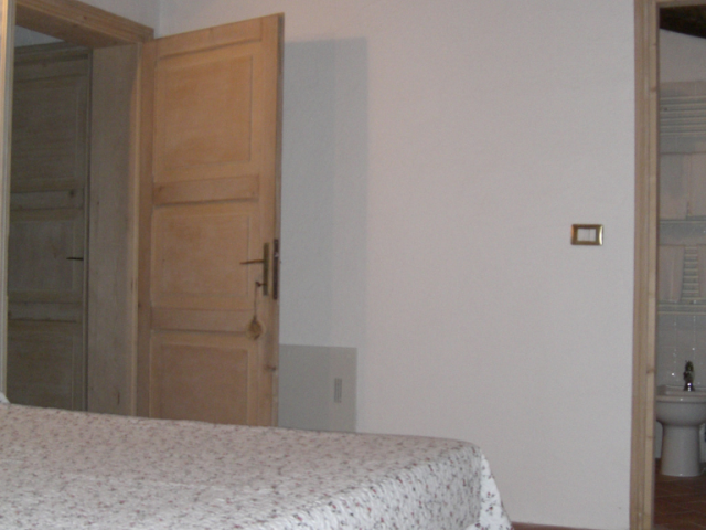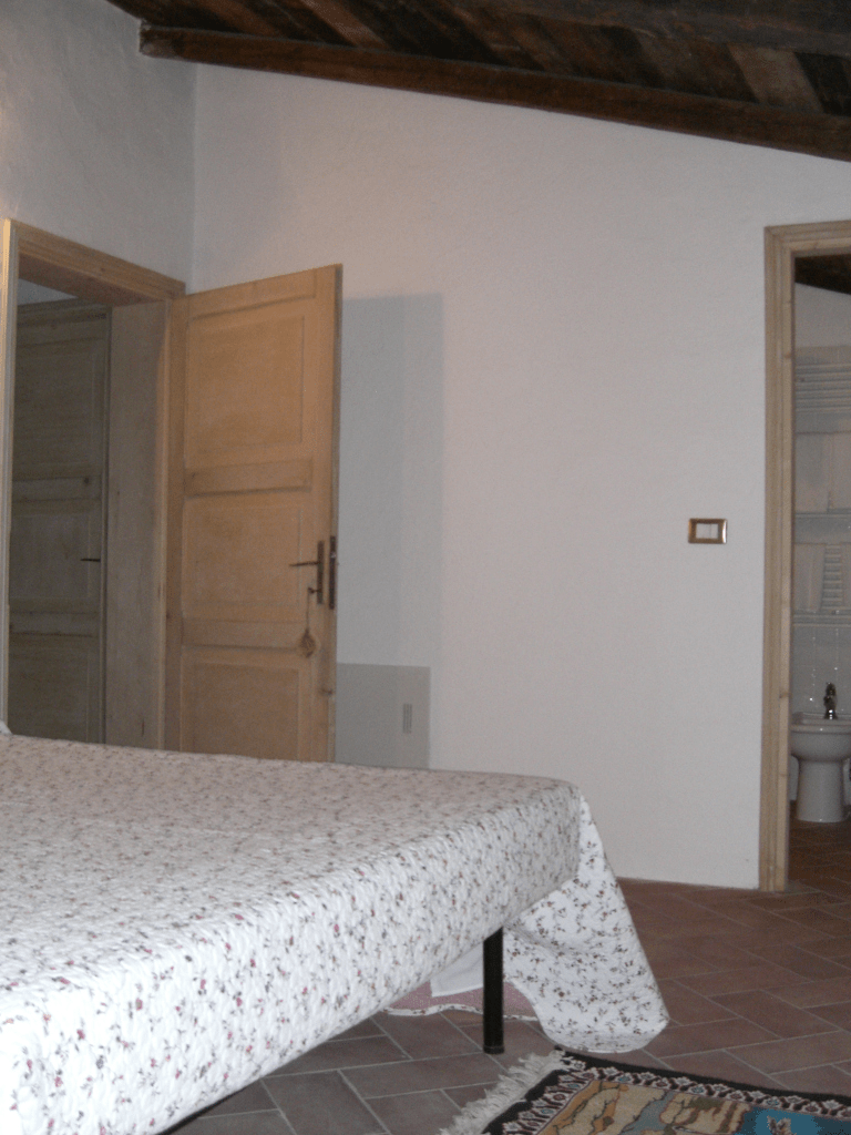 La camera si trova al primo piano ed è stata realizzata dove prima della ristrutturazione sorgeva il fienile. Vi si accede da una scala realizzata con i mattoni della vecchia stalla.
